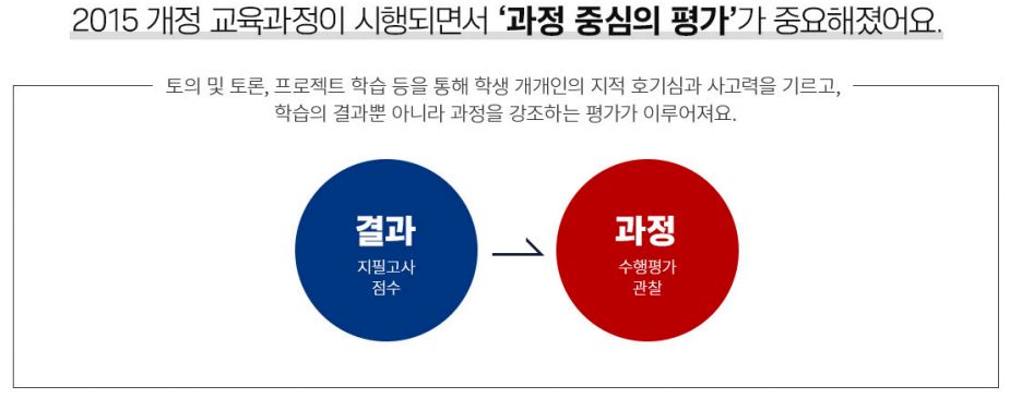 2015 개정교육과정이 도면서 결과 말고 과정중심의 평가를 강화하라는 기조 때문이라고 한다.
