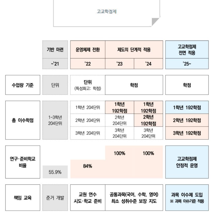 사실 고교학점제는 이미 부분적으로 고등학교에 적용되어 있었는데 2025년부터 전면 적용된다고 볼 수 있다.