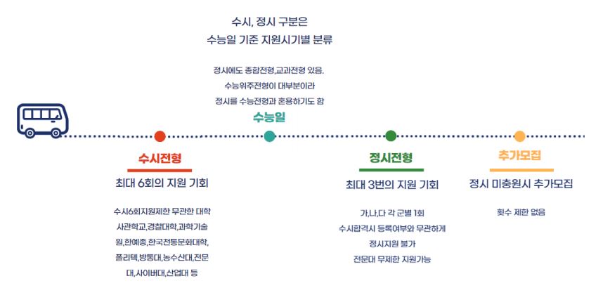 - 대학수학능력시험 즉, 수능 이후 학생들을 선발하는 수능기반의 제도.