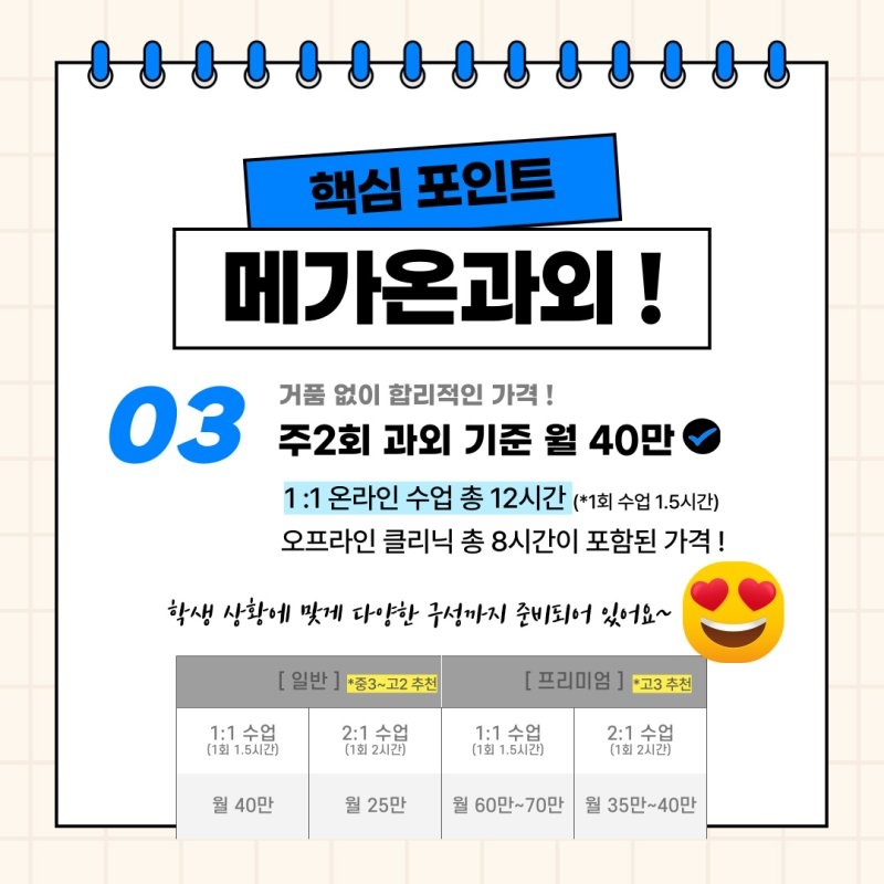 온라인 1:1 수업 + 오프라인 질의응답 병행 메가스터디 인강과 아무런 관련 없음 |