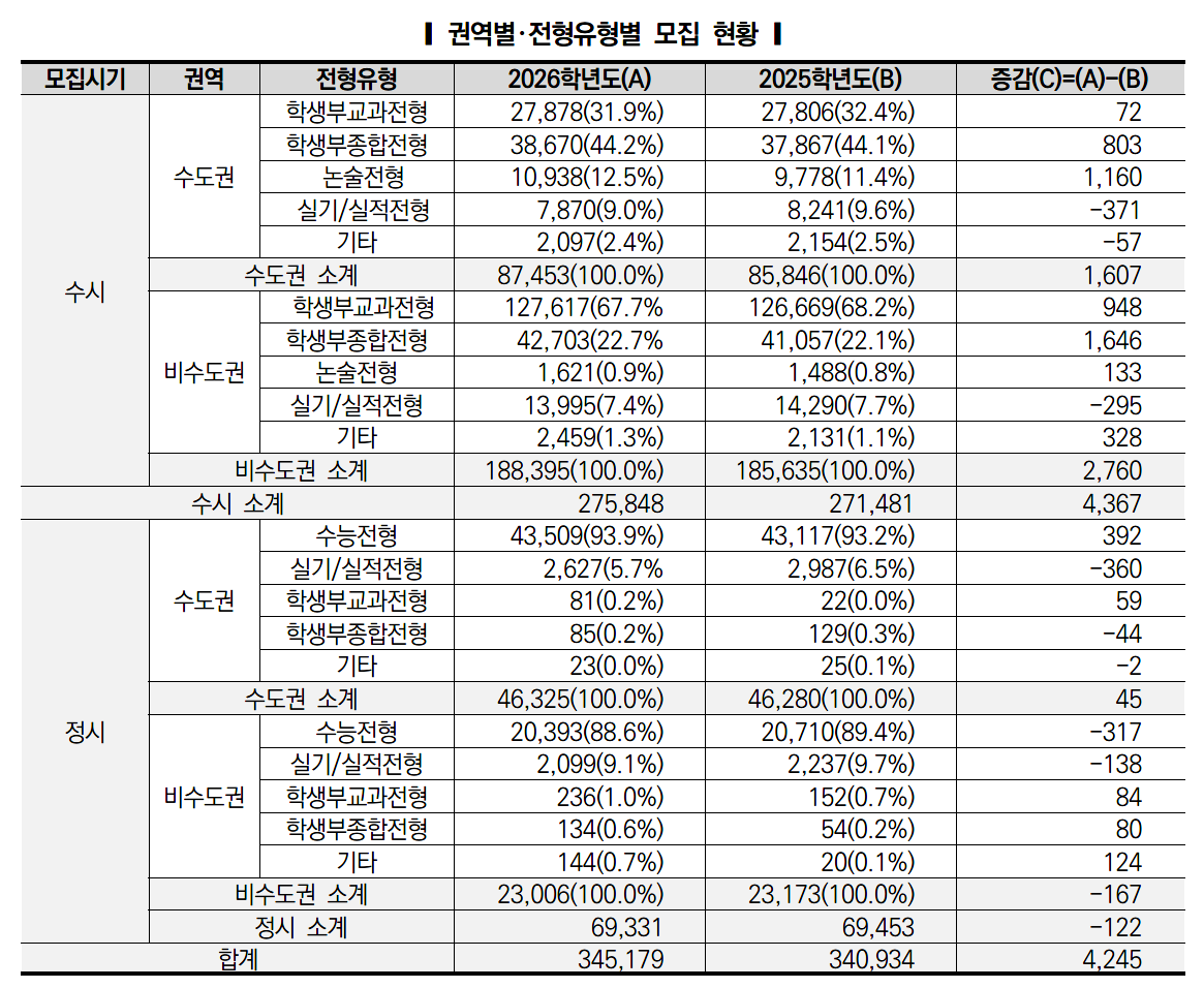 | ※ 재외국민과 외국인 특별전형: 2025.07.12.(토)~12.11.(목)(153일) | ※ 재외국민과 외국인 특별전형: 2026.07.11.(토)~12.17.(목)(160일) | |