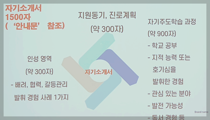 미리 자기소개서를 준비해 가고, 자기소개서에 적힌 것을 성실히 부연설명하고 느낀 점과 본인생각을