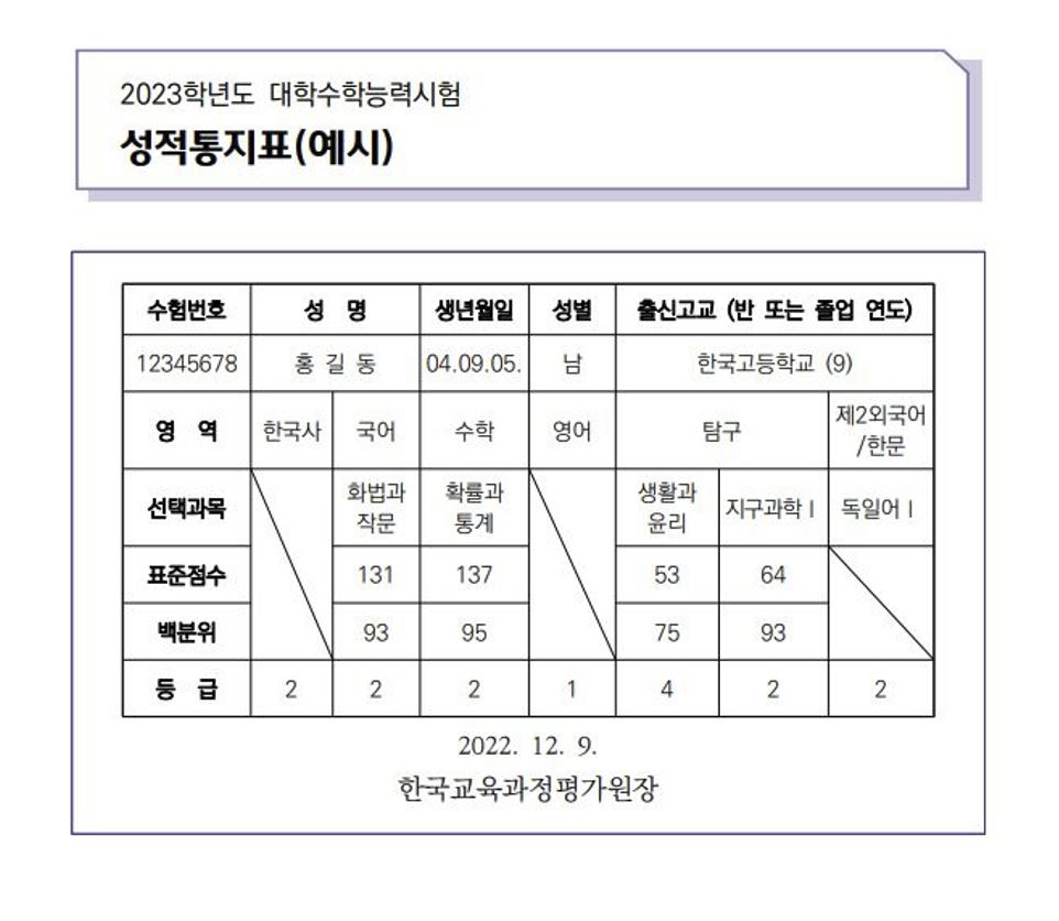 수능성적표(수능통지표) 읽는법(2024년 12월 6일 배부 예정)