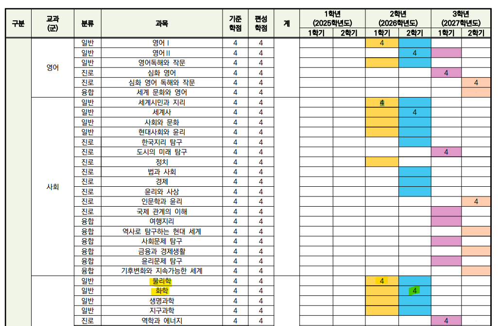 A 고등학교 교육계획서를 보면 정말로 1학기때 물리, 2학기때 화학을 확실히 개설해 두었다.