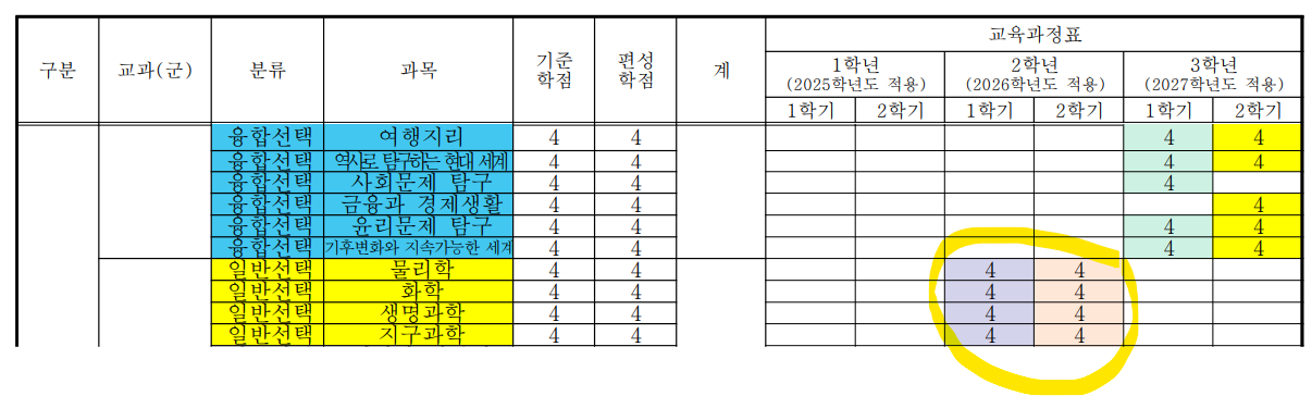 우리집 근처 일반고등학교 4곳 모두 확정된 과학 개설과목이 제각각이라는것