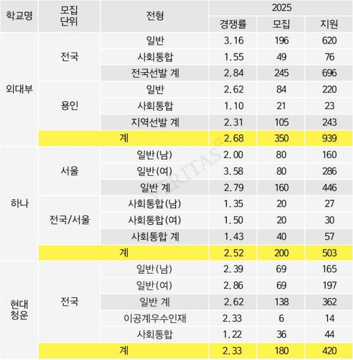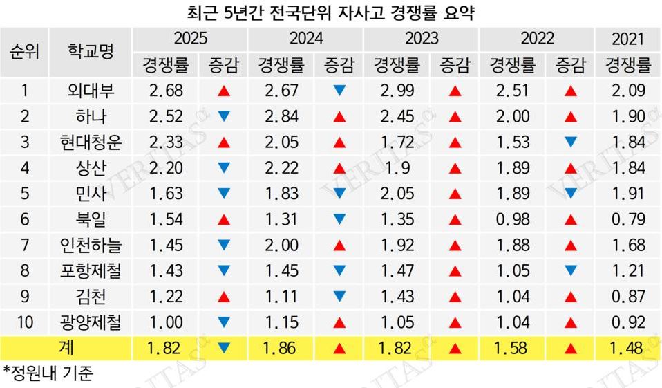 2025년 전국단위 자사고 경쟁률은 아래와 같다.