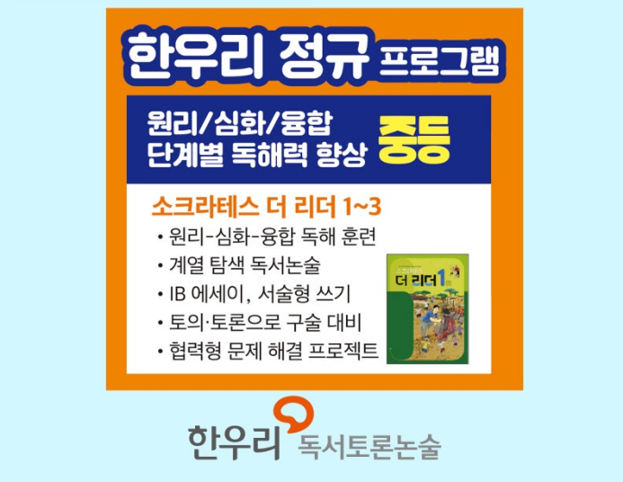 - 독서논술 프로그램을 보내는 거는 굉장히 유익했다는 사실 하나 (특히 한우리 1대 1)