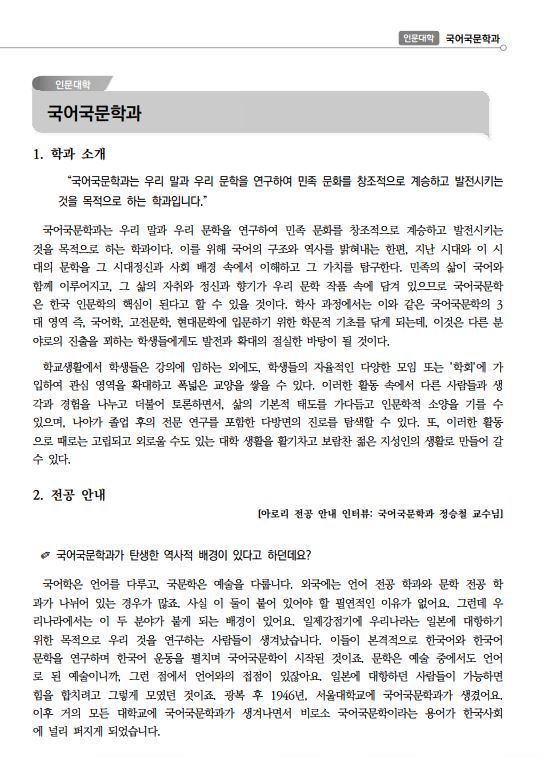 특히, 각 학과의 교육과정, 진로 전망, 관련 직업 등에 대한 내용을 포함하고 있어,