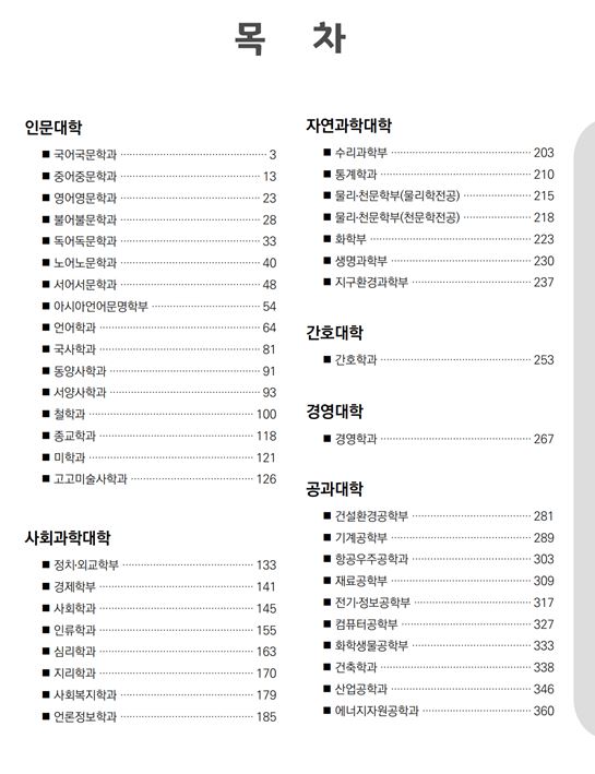 관심있는 학과만 찾아보면 되니까, 아이가 궁금해할 때 찾아서 보여주기에는 좋은 자료인것 같다.
