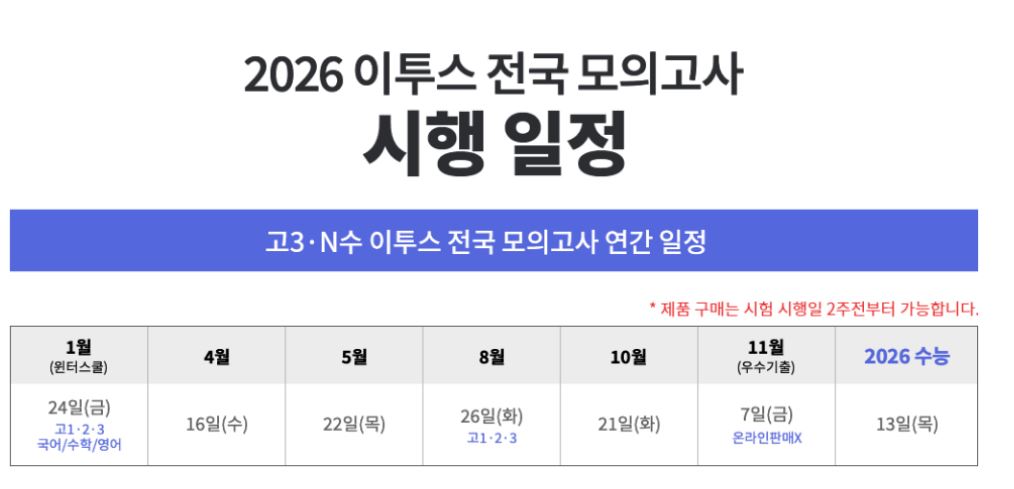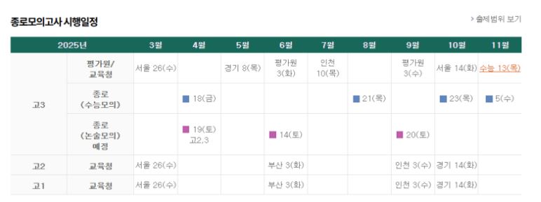 5. 2025년 평가원/교육청 및 사설기관 모의고사 일정(2026년 입시)