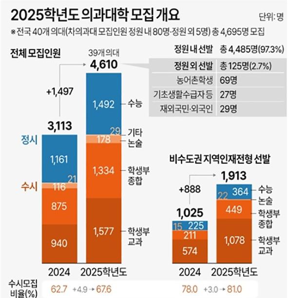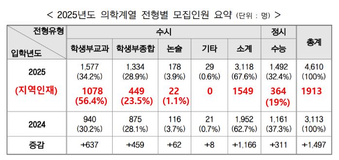 각 대학으로부터 취합해 발표한 ‘2025학년도 의대 대입전형 시행계획 주요 사항’을 보면 지역인재전형