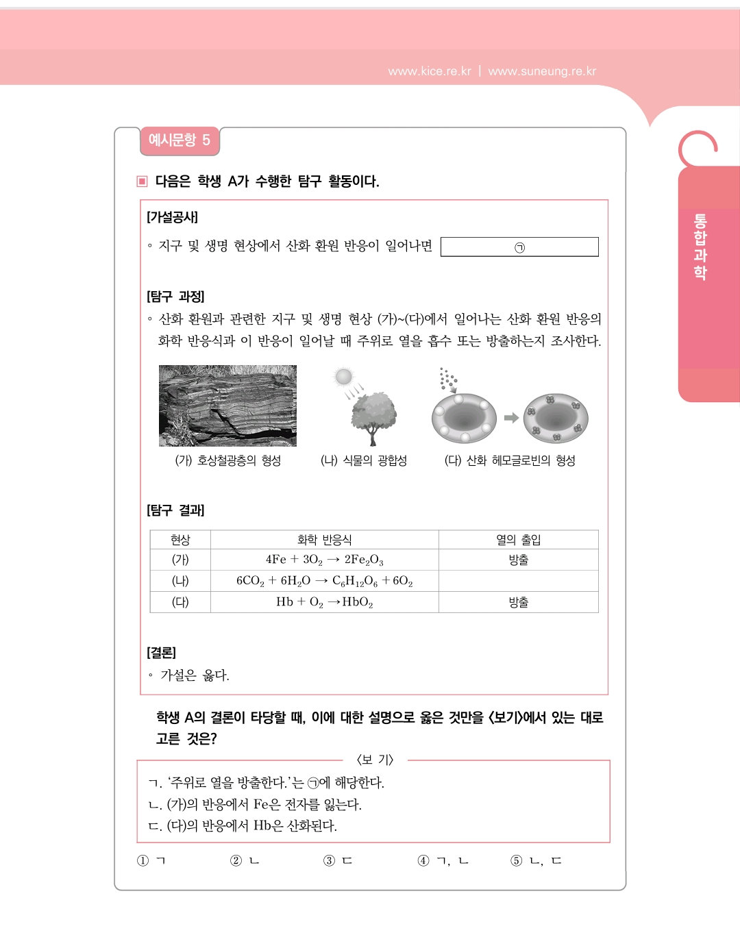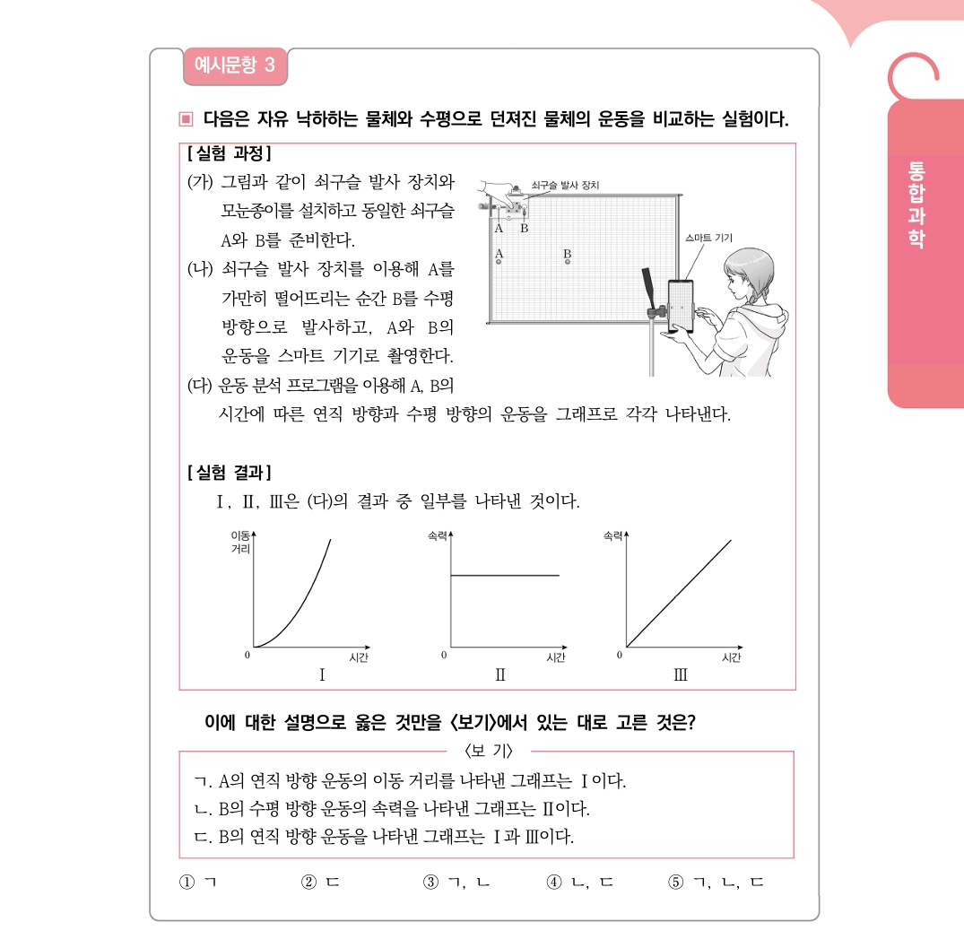 교육부에서 제시한 몇가지 향후 통합과학 수능시험 예시문제를 살펴보자