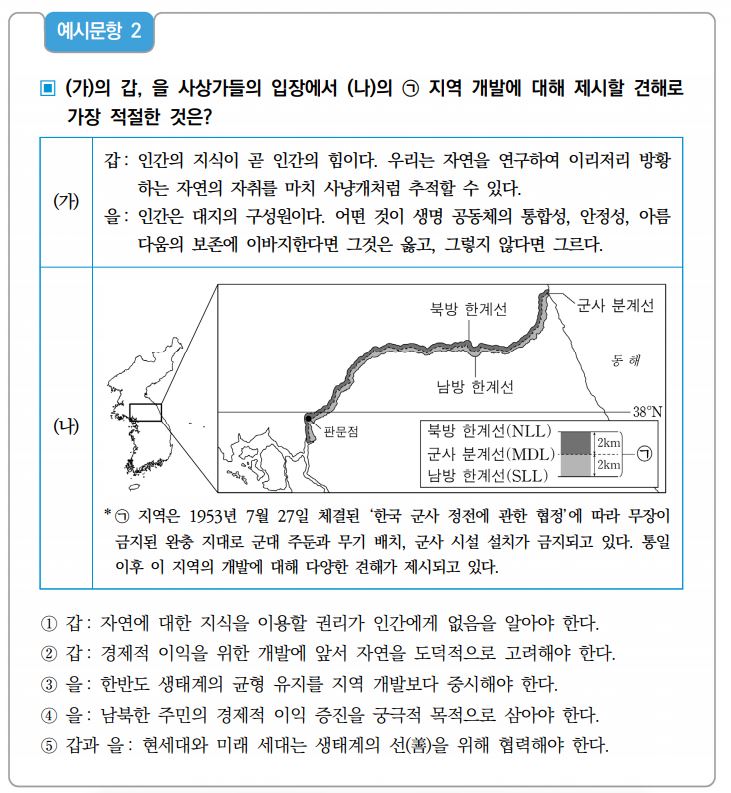 교육부와 한국교육과정평가원 2028학년도 대학수학능력시험 통합사회 예시 문항을 발표하였다.