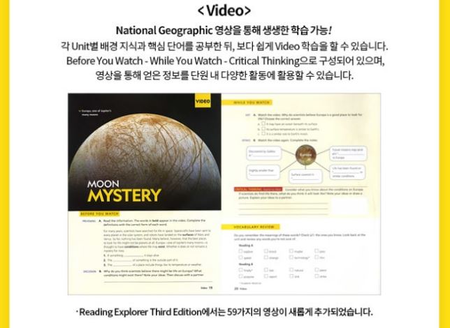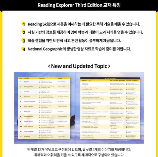 Reading Explorer 시리즈는 내셔널 지오그래픽 학습 프로그램의 일부로, 총 6권으로 구성되어 있으며,