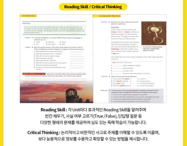 학습자의 흥미를 자극하고, 독해 능력과 세계 이해력을 함께 키우는 점에서 타 리딩 교재와 차별화된다.