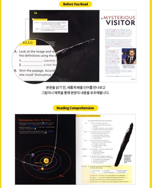 각 단원은 흥미로운 주제 중심의 독해 자료와 함께 주제에 관련된 어휘 연습, 토론 문제 및 문법 활동을